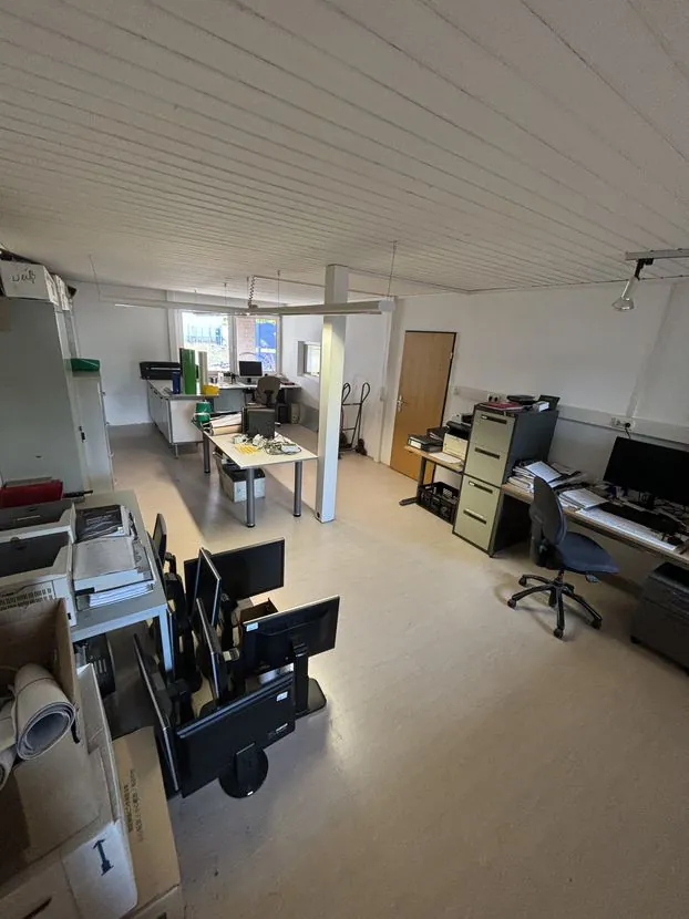 Wir bieten Ihnen eine vielseitig nutzbare Gewerbeeinheit bestehend aus einer geräumigen Halle, einem separaten Büroraum, einem Aufenthaltsraum mit Sanitäreinrichtungen, einem Lagerraum sowie einem großzügigen Vorplatz zur Vermietung an.