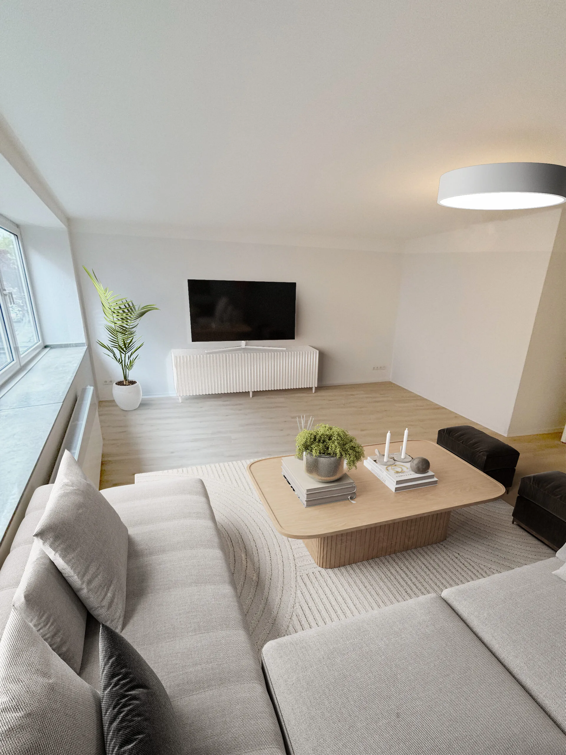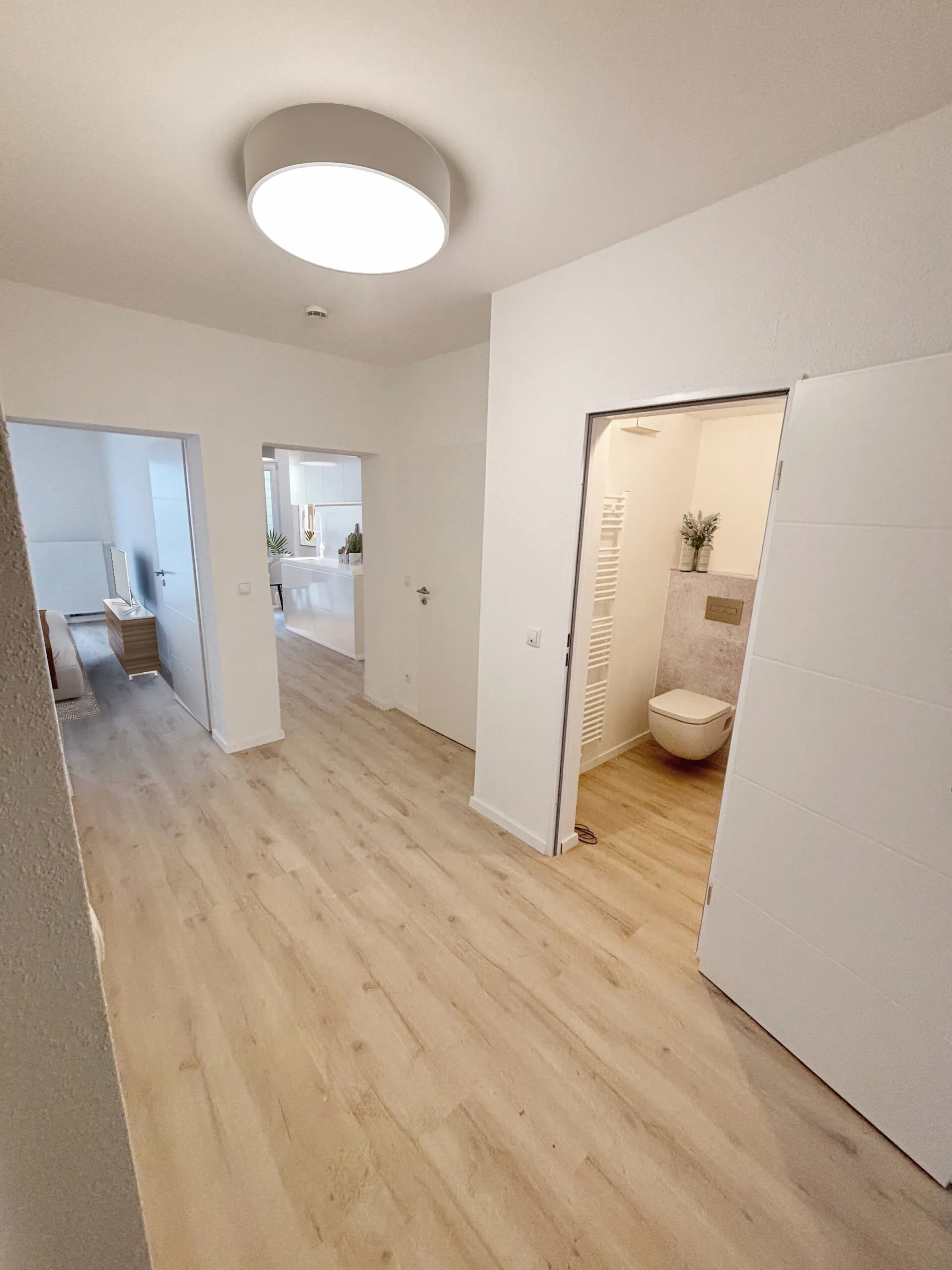 Alle Gewerke wurden umfassend erneuert – von Wasser- und Abwasserleitungen über Heizung bis hin zur Elektrik. Die Wohnung präsentiert sich damit in einem technisch und optisch neuwertigen Zustand.