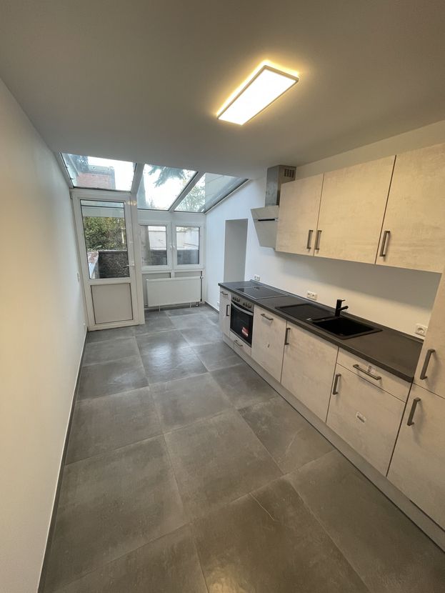 Die Küche ist funktional und modern ausgestattet, inklusive einer hochwertigen Einbauküche und ist die Verbindung zum angrenzenden Wintergarten.